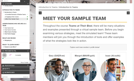 Activities in this course will help teams gain insight into how members feel and interact with each other, understand team functions and priorities, and identify opportunities for each member's strengths to shine.