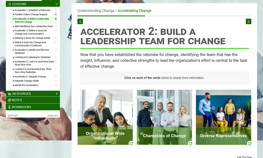 Dynamic Learning Path Includes fives courses that cover individual, relational, and collective strengths activation designed to meet the needs of all learners. Individuals have the flexibility to progress through the courses in the order that best suits their needs.